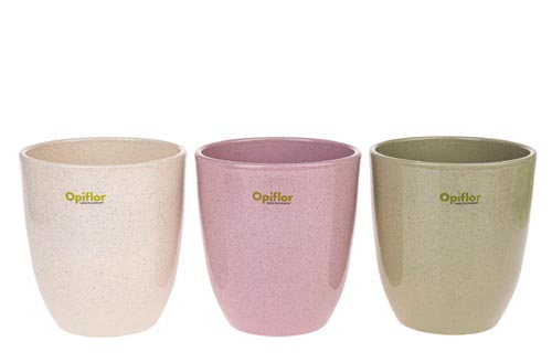 Kvetináč s efektom kamena, s integrovanou keramickou podložkou na odtok prebytočnej vody. V 3 rôznych farbách: : béžová, ružová, kiwi.