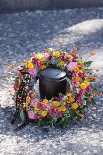 Vnútorný rozmer ø 24,5 cm. Aranžovacia hmota na živé kvety s drenážou a stabilným dreveným podstavcom. Urna stojí na stabilnom drevenom podstavci. Vhodná pre malé urny.